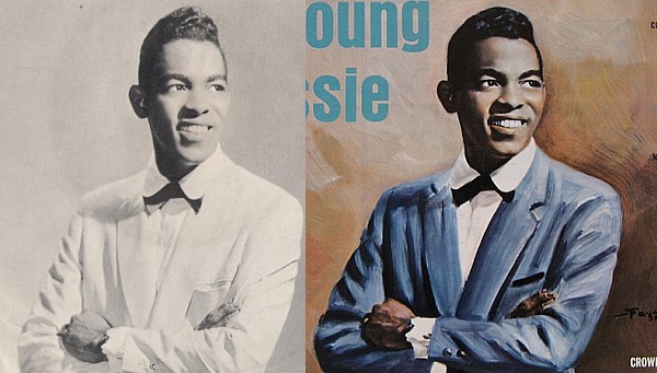 It appears that Fazzio took a photograph of the artist and used techniques like airbrushing and colourizing to create an image that looked more like a painting than the original photo. The picture above shows the original photo of Chuck Jackson, as it appears on the 'Come On A Love Me' single (Logo Records 7004, 1959. Image courtesy of 45cat.com) and the Fazzio creation for the 1963 Crown LP (CST 354) that re-released the two tracks from the Logo single together with several Young Jessie tunes from the 1950s.