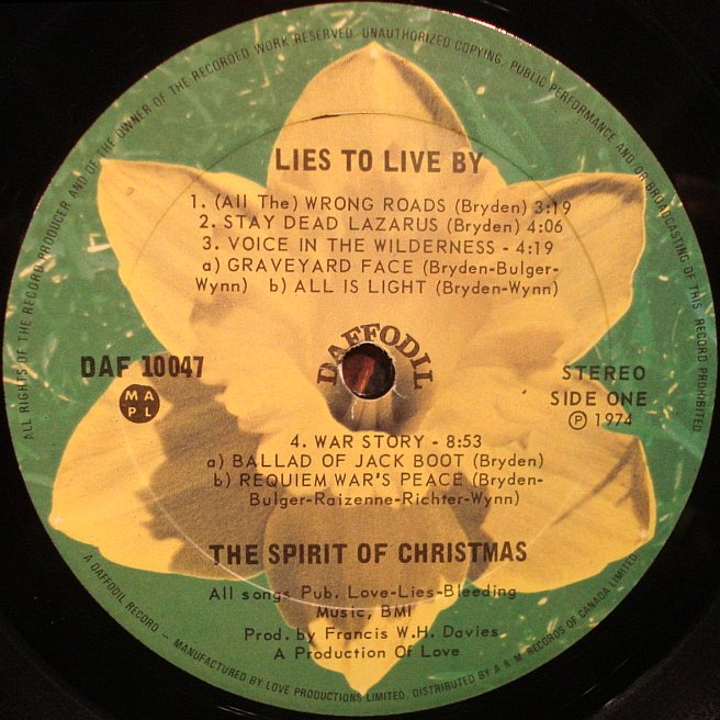 Daffodil Records was a Canadian record label, founded in 1971 by Frank Davies, who had previously been associated in the United Kingdom with Liberty Records and EMI Records. The label was owned by Love Productions and most of its releases were distributed by Capitol Records, although there are some GRT and A&M distributed albums inbetween. Daffodil Records was the first independent Canadian label to be distributed under its own name in international markets. Through a 1971 agreement with Festival Records, Daffodil was distributed under its own name in Australia and New Zealand.