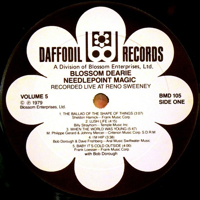 Daffodil Records (USA) was an unrelated jazz label, started in 1973 by American jazz singer and pianist Blossom Dearie. "Record companies were not willing to produce the kind of recordings that Blossom wanted to create, and Blossom was unwilling to work any other way." (Daffodil Records Inc.) The label is still active today.