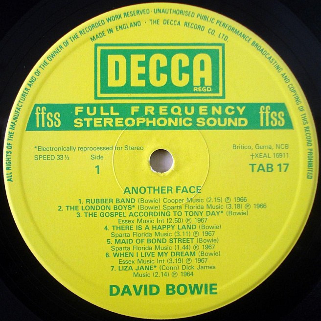The first unboxed Decca mono label has a red background and an inner groove, and was used approximately until summer of 1968. Original pressings earlier than 1965 have 'RECORDING FIRST PUBLISHED 196x' printed instead of 'Ⓟ 196x'.